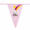 Wauw het wordt een meisje. Vier het en versier je huis met deze mooie slinger in een roze kleur.